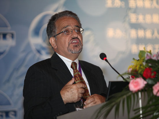 “世界產(chǎn)業(yè)領(lǐng)袖大會”于2011年9月5日在吉林省長春市隆重舉行。上圖為北維尼吉亞社區(qū)學(xué)院數(shù)學(xué)、科學(xué)和工程學(xué)習(xí)主任亞伯-埃夫特哈里。(圖片來源:新浪財經(jīng) 梁斌 攝)