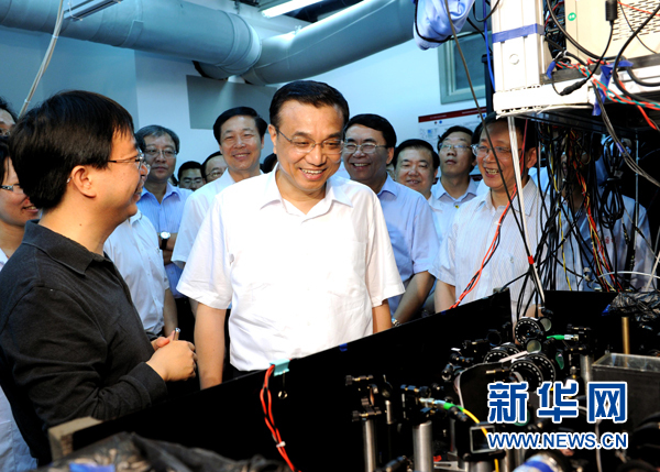 這是7月5日,李克強(qiáng)在中國(guó)科技大學(xué)考察微尺度國(guó)家實(shí)驗(yàn)室。新華社記者饒愛(ài)民攝