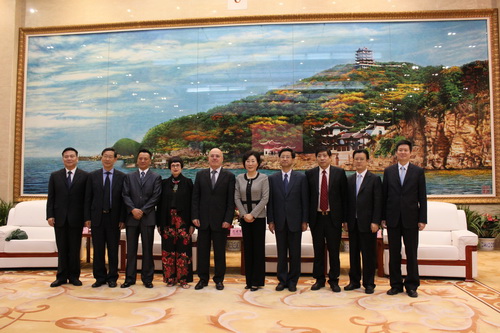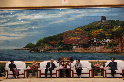 亞太總裁協(xié)會全球副會長、法國前總統(tǒng)參謀長克里斯汀.加諾上將與花建慧、鄭為文等省市領導合影