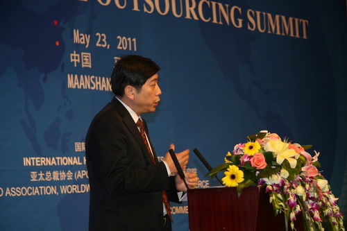 非常高興能夠和各位相聚在“山清水秀、人杰地靈”的馬鞍山。馬鞍山有著深厚的文化底蘊(yùn),是“中國(guó)投資環(huán)境百佳城市”之一,據(jù)說中國(guó)古代大詩(shī)人李白一生七次來到馬鞍山,并留下了許多千古絕句。今天我們?cè)谶@里,共同召開第四屆全球服務(wù)外包大會(huì),共商新形勢(shì)下全球及中國(guó)服務(wù)外包發(fā)展大計(jì),相信也會(huì)在馬鞍山的城市發(fā)展史上留下一段精彩的佳話。下面我講三方面的內(nèi)容:
