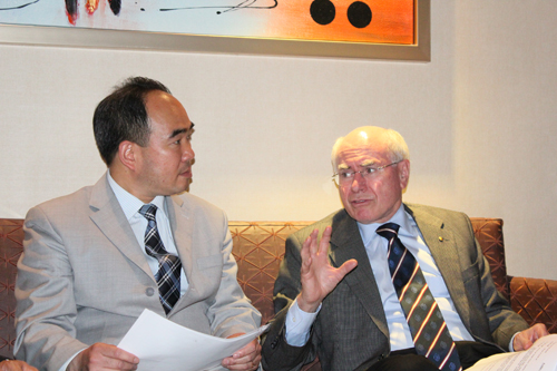 亞太總裁協(xié)會(huì)全球執(zhí)行主席鄭雄偉與澳大利亞前總理霍華德會(huì)前親切交流