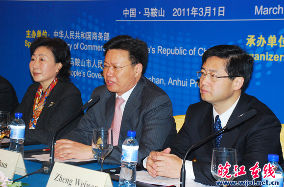 國家商務(wù)部部長助理、黨組成員俞建華,安徽省人民政府副省長花建慧,商務(wù)部國際司副司長孫元江,市委書記鄭為文,市長張曉麟,省商務(wù)廳廳長于勇,市委常委、副市長駱磊等出席會議。俞建華、鄭為文、于勇先后在會上致辭。