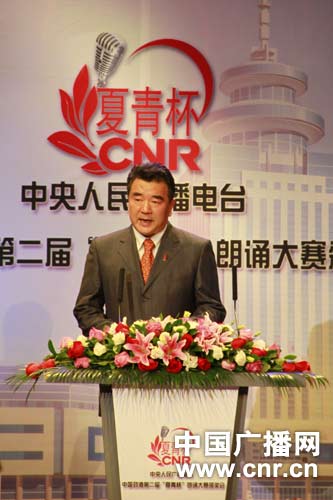 中央人民廣播電臺臺長、中央人民廣播電臺中國勁酒第二屆 “夏青杯”朗誦大賽組委會主任王求致辭。