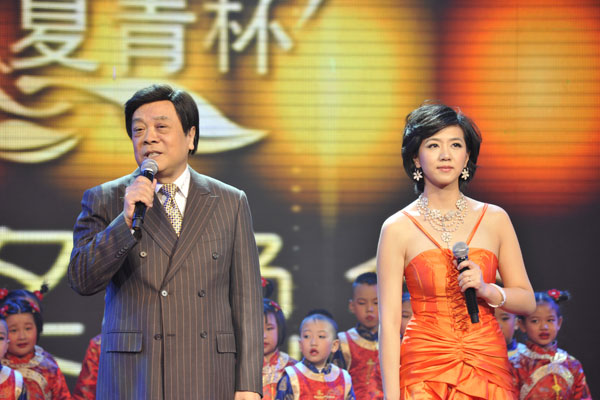 首屆“夏青杯”朗誦大賽頒獎(jiǎng)晚會(huì)主持人趙忠祥(左)、劉玉蕾