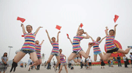 紅巖舞蹈藝術中心的演員們剛下火車就來到了天安門廣場