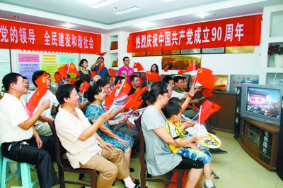 7月1日,慶祝中國共產(chǎn)黨成立90周年大會在北京隆重舉行。當(dāng)日,合肥市岳西新村社區(qū)黨委認(rèn)真組織轄區(qū)居民收看中央電視臺現(xiàn)場直播,大會盛況讓居民深受鼓舞。(記者 黃連廣 攝)