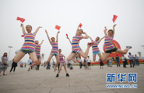7月1日,來自山東省棗莊市紅巖舞蹈藝術中心的演員們剛下火車就來到了天安門廣場。當日,來自全國各地的數(shù)萬名群眾匯聚北京天安門廣場,觀看隆重的升旗儀式,紀念中國共產黨成立90周年。 新華社發(fā)(萬象 攝)