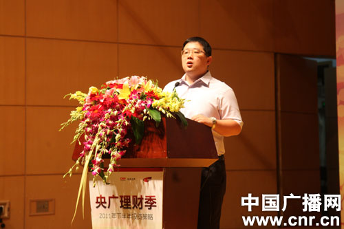 “央廣理財季”17日隆重起航,以2011年下半年投資策略為主題;顒蝇F(xiàn)場將以貼近民生的理財話題為主題,以聽眾+專業(yè)理財嘉賓+經(jīng)濟(jì)之聲王牌主持的現(xiàn)場交流互動為形式,為聽眾與專家搭建零距離互動交流平臺。圖為啟明樂投資產(chǎn)管理公司董事長、私募基金經(jīng)理李堅,現(xiàn)場講解2011下半年投資策略——備戰(zhàn)3000點(diǎn)。(中廣網(wǎng)記者 任芳 攝)