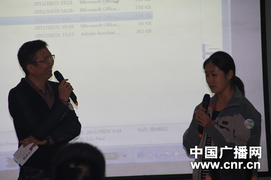 10月22日,“20,30,40, 理財,設(shè)計未來”---央廣理財季時尚白領(lǐng)理財沙龍,助您增值財富,實現(xiàn)夢想!圖為活動現(xiàn)場觀眾上臺講述個人理財觀。(中廣網(wǎng)記者楊雁霞 攝)