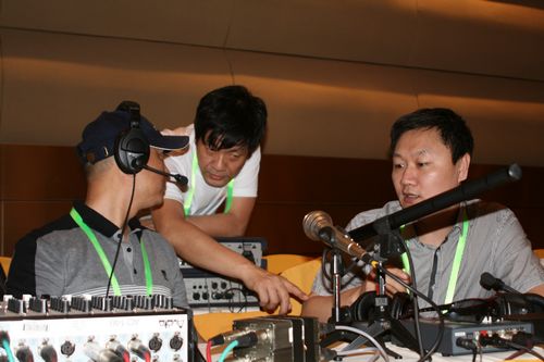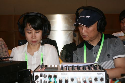 技術(shù)人員正在與主持人討論播出注意事項(xiàng)