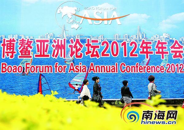 3月27日,?谑腥f綠園的博鰲亞洲論壇2012年年會宣傳牌。本報記者李英挺攝
