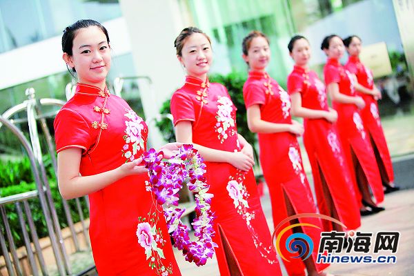 3月27日,在博鰲亞洲論壇大酒店,禮儀小姐以青春靚麗的面貌亮相。本報記者張杰攝