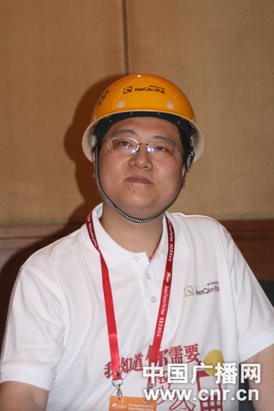 手機(jī)移動(dòng)安全領(lǐng)軍品牌網(wǎng)秦的掌舵人林宇博士出席博鰲論壇,他的打扮惹人眼球。他頭帶亮黃色安全帽,身穿純白色T恤,T恤上還印有一行醒目的標(biāo)語(yǔ)“我知道你需要安全感”!中廣網(wǎng)記者祁亞楠 攝