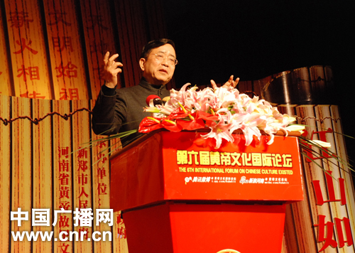 中廣網(wǎng)河南分網(wǎng)消息 (記者 聶娟)3月22日下午,第六屆黃帝文化國際論壇在新鄭市開幕。論壇主席、著名文化學(xué)者、作家余秋雨和中國社科院歷史研究所研究員、中國明史學(xué)會會長商傳,在論壇上分別以“江山如畫”為主題,暢談了燦爛的中國歷史文化精粹,引起了與會人員的高度贊揚。全國政協(xié)常委、民革中央副主席何丕潔、鄭州市人民政府市長馬懿、著名學(xué)者張希清、常文光、王震中、著名策劃人朱海等出席了論壇開幕式。
