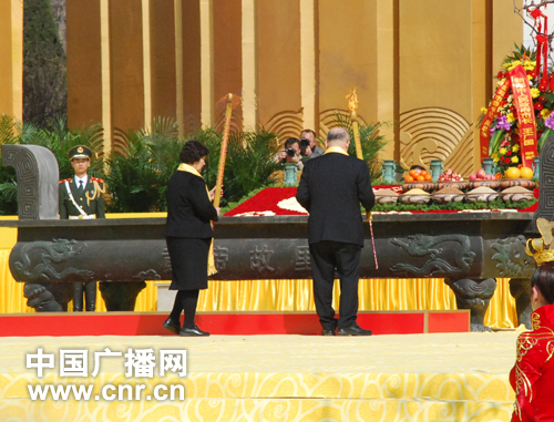 受邀參加壬辰年黃帝故里拜祖大典的中國(guó)國(guó)民黨榮譽(yù)主席吳伯雄及其夫人敬獻(xiàn)了頭香。