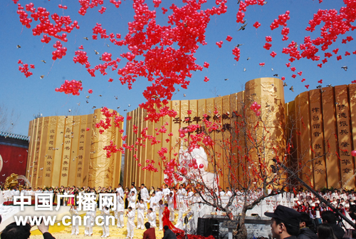 中廣網(wǎng)河南分網(wǎng)消息 2012年3月24日,農(nóng)歷三月初三,中華兒女共同關(guān)注的壬辰年黃帝故里拜祖大典在新鄭市隆重舉行。來自海內(nèi)外的各界嘉賓萬余人喜聚盛典,拜謁中華民族的始祖軒轅黃帝,共同祈福華夏繁榮昌盛,祝愿世界和平。為讓海內(nèi)外華人等炎黃子孫都有機(jī)會(huì)進(jìn)行拜祖,黃帝故里景區(qū)在大典結(jié)束之后將面向全體市民開放,以滿足群眾“三月三、拜軒轅”的心愿。