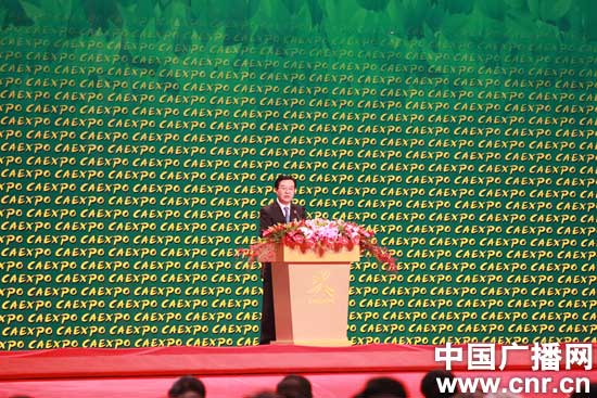 中國(guó)商務(wù)部國(guó)際貿(mào)易談判代表兼副部長(zhǎng)高虎城致辭。中廣網(wǎng)記者張壘 攝
