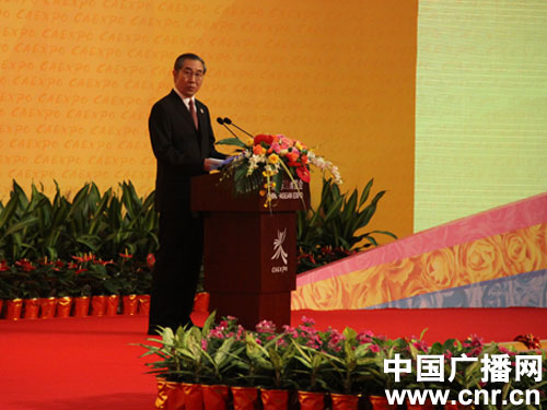 廣西壯族自治區(qū)主席馬飚發(fā)表講話(中廣網(wǎng)記者張卓 攝)