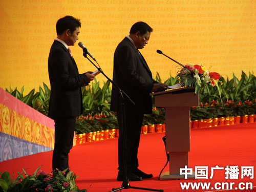 緬甸商務(wù)部部長主持開幕式(中廣網(wǎng)記者張卓 攝)