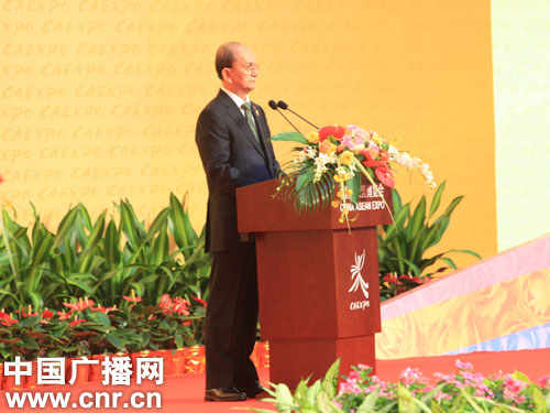 本屆博覽會主題國緬甸總統(tǒng)吳登盛致辭(中廣網(wǎng)記者張卓 攝)