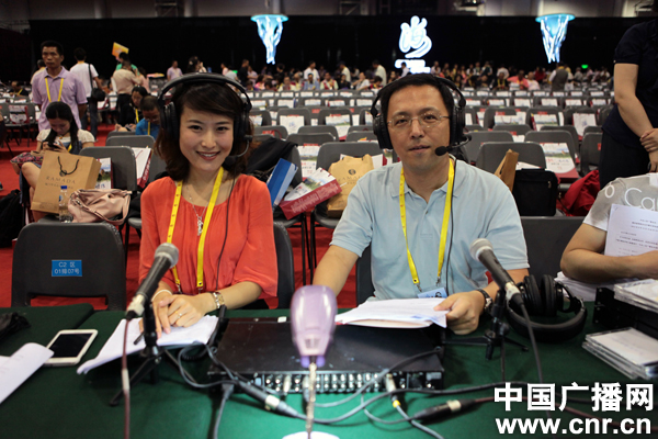中央人民廣播電臺(tái)主持人曲飛(左)賈旭東(右)(中廣網(wǎng)記者 李雪南攝)