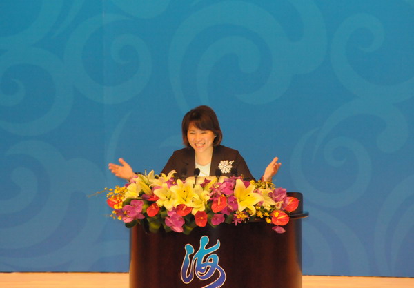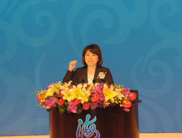 中國(guó)國(guó)民黨副主席黃敏惠女士在論壇大會(huì)上發(fā)言(新華網(wǎng) 陳杰攝)