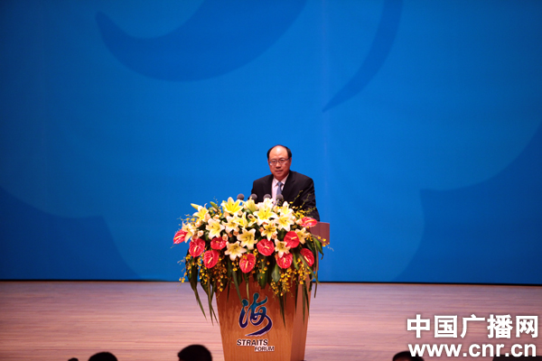 中共中央臺(tái)辦、國(guó)臺(tái)辦副主任鄭立中擔(dān)任大會(huì)主持人(中廣網(wǎng)記者 李雪南攝)