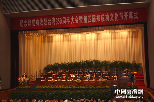 “紀(jì)念鄭成功收復(fù)臺(tái)灣350周年大會(huì)暨第四屆鄭成功文化節(jié)”開幕式現(xiàn)場(chǎng)。(中國臺(tái)灣網(wǎng) 董子譽(yù) 攝)