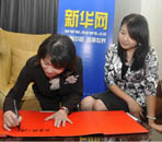 國(guó)民黨副主席、嘉義市市長(zhǎng)黃敏惠(左)給新華網(wǎng)友留言:特別的愛給特別的你。國(guó)民黨副主席、嘉義市市長(zhǎng)黃敏惠(左)給新華網(wǎng)友留言:特別的愛給特別的你。