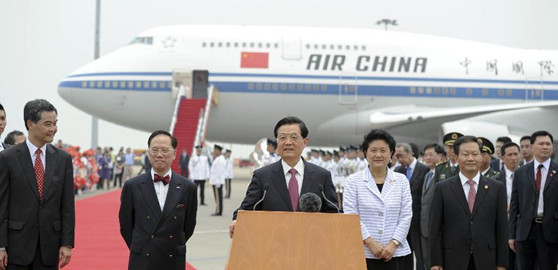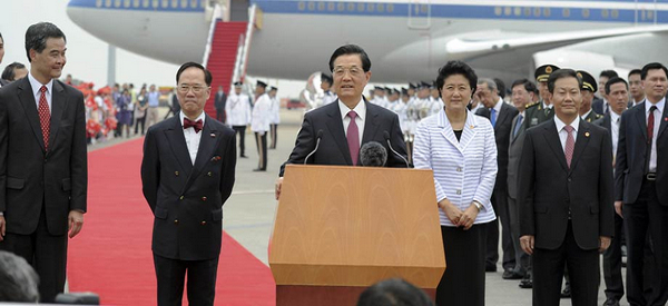 胡錦濤主席抵達香港國際機場并發(fā)表簡短講話