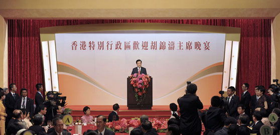 胡錦濤出席香港特區(qū)政府歡迎晚宴