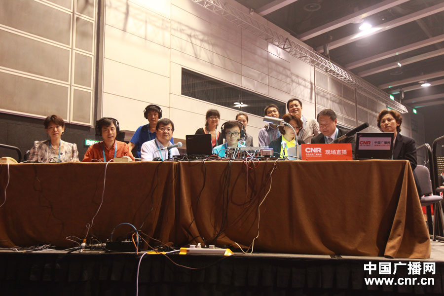 中央臺前方報道組做慶祝香港回歸十五周年文藝晚會直播前最后準備(中廣網(wǎng)記者陳鐘 攝)
