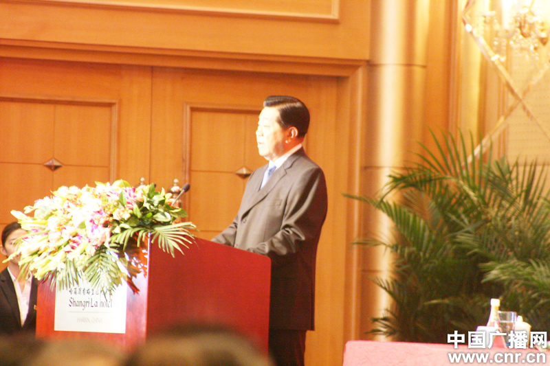 中共中央政治局常委、全國(guó)政協(xié)主席賈慶林致辭(中廣網(wǎng)記者 安紅麗 攝)