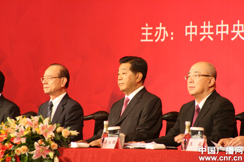 中共中央政治局常委、全國政協(xié)主席賈慶林,中國國民黨榮譽(yù)主席吳伯雄出席第八屆兩岸經(jīng)貿(mào)文化論壇閉幕式。(中廣網(wǎng)記者 安紅麗 攝)