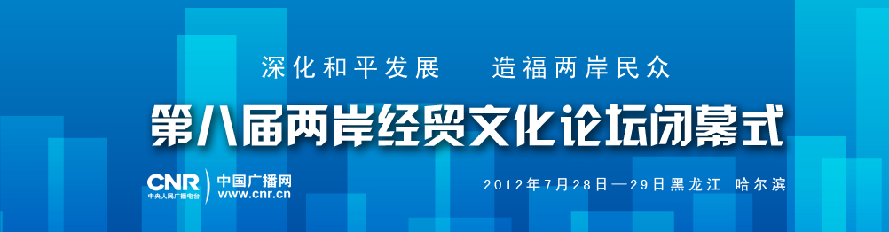 第八屆兩岸經(jīng)貿(mào)文化論壇于7月29日15:30——16:30在黑龍江省哈爾濱市舉行閉幕式。中國廣播網(wǎng)同步直播,歡迎網(wǎng)友關注!