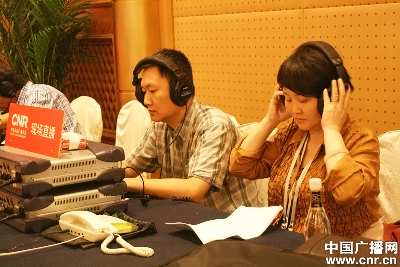 中央人民廣播電臺直播人員調試設備,確保直播萬無一失。(中廣網記者 安紅麗 攝)