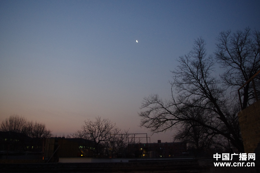 站在何柏旸家的陽臺上,還能看到冬日清晨的一彎冷月(中廣網(wǎng)記者路林強 攝)
