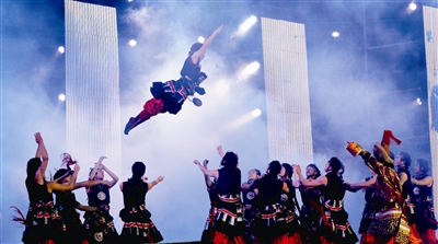 十、九、八、七…… 伴隨全場(chǎng)觀眾的齊聲倒計(jì)時(shí),激情四射的焰火照亮了浩瀚夜空。開場(chǎng)舞《花開中華大家園》拉開了晚會(huì)帷幕,生動(dòng)表現(xiàn)了社會(huì)主義大家庭里各民族快樂(lè)祥和的幸福生活,傳遞著人與自然和諧相處的美好愿景。在兩個(gè)小時(shí)的節(jié)目里,美麗的彝族姑娘舞動(dòng)著鮮艷的裙擺,猶如炫麗的花朵在熱情地綻放,俊朗的藏族小伙邁著矯健的舞步,猶如雄鷹傳遞來(lái)自雪域高原的祝福。各族演員身著民族服裝,把人與人之間的真摯情感巧妙融合在華美的舞蹈里、融入在悅耳的歌聲中。從雪域高原到大漠戈壁,從北部海疆到南沙礁盤……歌聲與風(fēng)情同樣真摯久遠(yuǎn),舞姿與愛(ài)情同樣風(fēng)采蹁躚。醉人的美酒,飄飛的衣衫,美麗的笑容,多彩的家園,讓涼都近萬(wàn)名觀眾流連忘返……