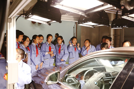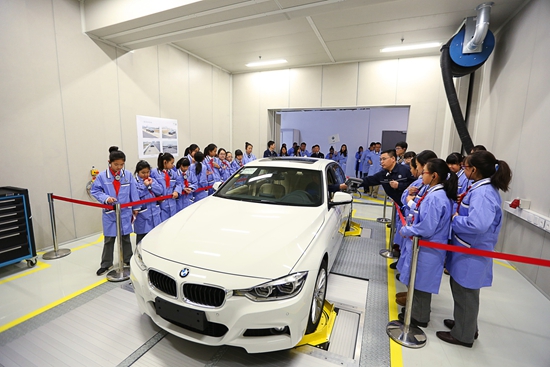 今年,華晨寶馬繼續(xù)完善培訓(xùn)內(nèi)容,拓展項目的受益面,為學(xué)生們設(shè)計了包括汽車知識講堂,工廠參觀,趣味互動在內(nèi)的形式多樣的活動。學(xué)生們探訪了華晨寶馬質(zhì)量實驗室中的聲學(xué)、氣象以及振動實驗室,參觀了全自動化機(jī)器人工作時的場景和之諾品牌展示區(qū),對華晨寶馬在環(huán)保、質(zhì)量以及技術(shù)領(lǐng)域的領(lǐng)先技術(shù)有了切身體會。同時,現(xiàn)場還精心安排了汽車模具拼裝互動活動,讓孩子們在建立品質(zhì)觀念的同時,更能將其運用到日常的學(xué)習(xí)和生活中。