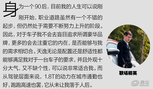 隨著80、90后逐漸成為了社會的中流砥柱,越來越多的責(zé)任也落在了這兩代人的身上。因此,生活的節(jié)奏和壓力也是不輸于父輩的,選擇一臺合適的車子,既是出于提高生活的效率,同樣,也出于提高生活的品質(zhì)。這次,我請來了三位不同身份的年輕人,從他們自身的角度來談?wù)勊麄兊膼圮嚒╄F龍?zhí)煲荨?/p>