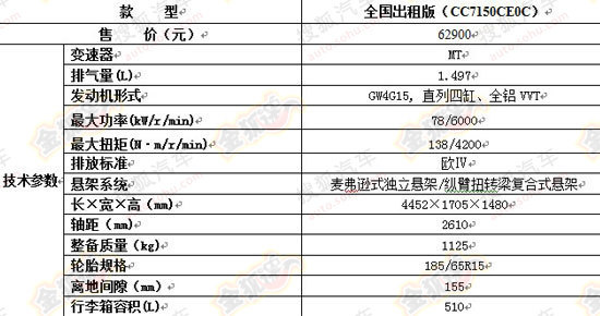 長城C30出租車配置曝光 售價為6.29萬元
