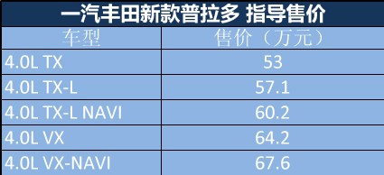 據悉,國產新款普拉多將在此次廣州車展上市,售價區(qū)間為53萬-67.6萬。