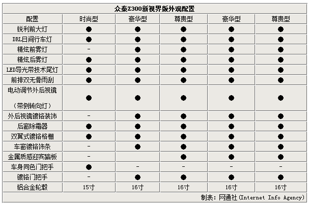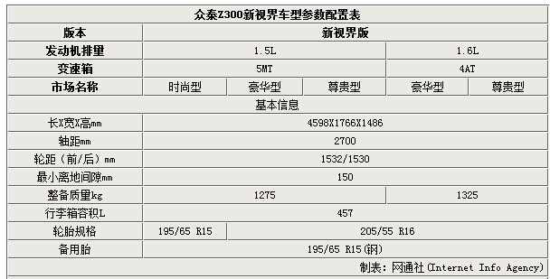 眾泰Z300加長(zhǎng)版-配置首次曝光 推5款車(chē)型