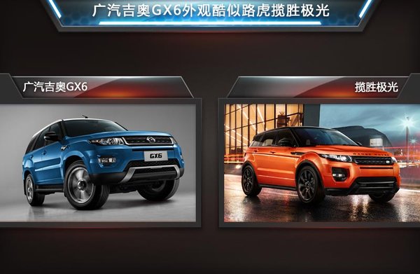 我們通過廣汽吉奧GX6的外觀造型能看出,該車的不少細(xì)節(jié)都是以路虎攬勝極光的設(shè)計元素為原型所打造的。值得一提的是,與攬勝極光相比,廣汽GX6的車身明顯更加高大。鷹眼大燈、U形前臉與大面積中網(wǎng)的融合度很高。而這些前臉設(shè)計,無論是大燈、霧燈、進(jìn)氣格柵還是保險杠亮色下護(hù)板,均與攬勝極光高度相似。