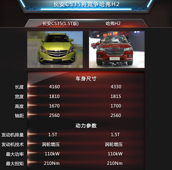 哈弗品牌小型SUV——H2已經(jīng)正式上市。作為目前國內(nèi)SUV的領(lǐng)軍人物,哈弗此前推出的H5、H6都有不錯的銷量,H2上市后勢必將對長安CS35產(chǎn)生沖擊。長安CS35此次推出1.5T車型將與其直面競爭。巧合的是哈弗H2和長安CS35軸距相同,所搭載的1.5T動力參數(shù)也完全相同。