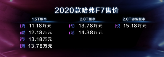 售價11.18-15.18萬 2020款哈弗F7五大升級