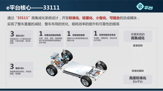e平臺囊括了一輛電動汽車最關鍵的五大技術。它們分別是: