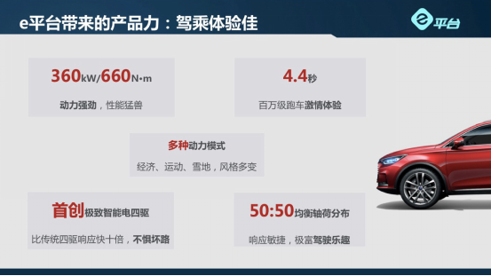 對消費者而言,采用e平臺技術開發(fā)的電動車,意味著更高的安全性、更長的續(xù)航、更可靠的質(zhì)量、更優(yōu)秀的質(zhì)價比。