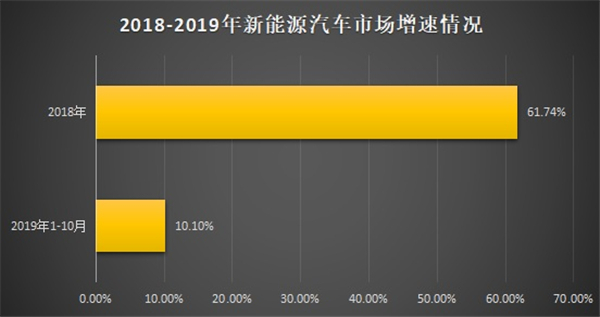 聚焦新能源市場(chǎng),2018年,我國(guó)新能源車(chē)銷(xiāo)量達(dá)到125.62萬(wàn)輛,同比增長(zhǎng)61.74%。但受補(bǔ)貼退坡、大量低端產(chǎn)品面臨淘汰等因素影響,截至2019年10月,國(guó)內(nèi)新能源市場(chǎng)出現(xiàn)“四連降”,累計(jì)銷(xiāo)量增速已降至10.2%,共銷(xiāo)售94.7萬(wàn)輛;純電市場(chǎng)增速則高于平均水平,1-10月,純電車(chē)型銷(xiāo)量同比增長(zhǎng)24.9%。
