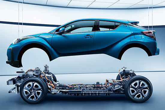 基于TNGA架構(gòu)的先進(jìn)性,C-HR EV配備了麥弗遜式前懸掛和雙叉臂式獨(dú)立后懸掛,有效捕捉路面起伏,提升車(chē)身穩(wěn)定性和反應(yīng)性。通過(guò)將電池包置于底板下,并設(shè)計(jì)成車(chē)身骨架的一部分,使車(chē)身的抗扭剛性提升了20%,重心降低14%,帶來(lái)更強(qiáng)的操控穩(wěn)定性。